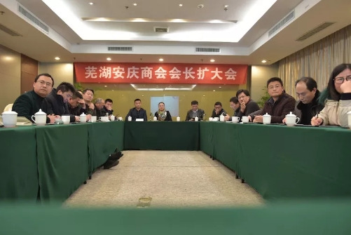 2019年2月27日,芜湖安庆商会会长扩大会在国信大酒店如期举行。公司董事长,芜湖安庆商会会长程华、执行会长宋满星、执行秘书长、各分会会长等30余人参加此次会议。